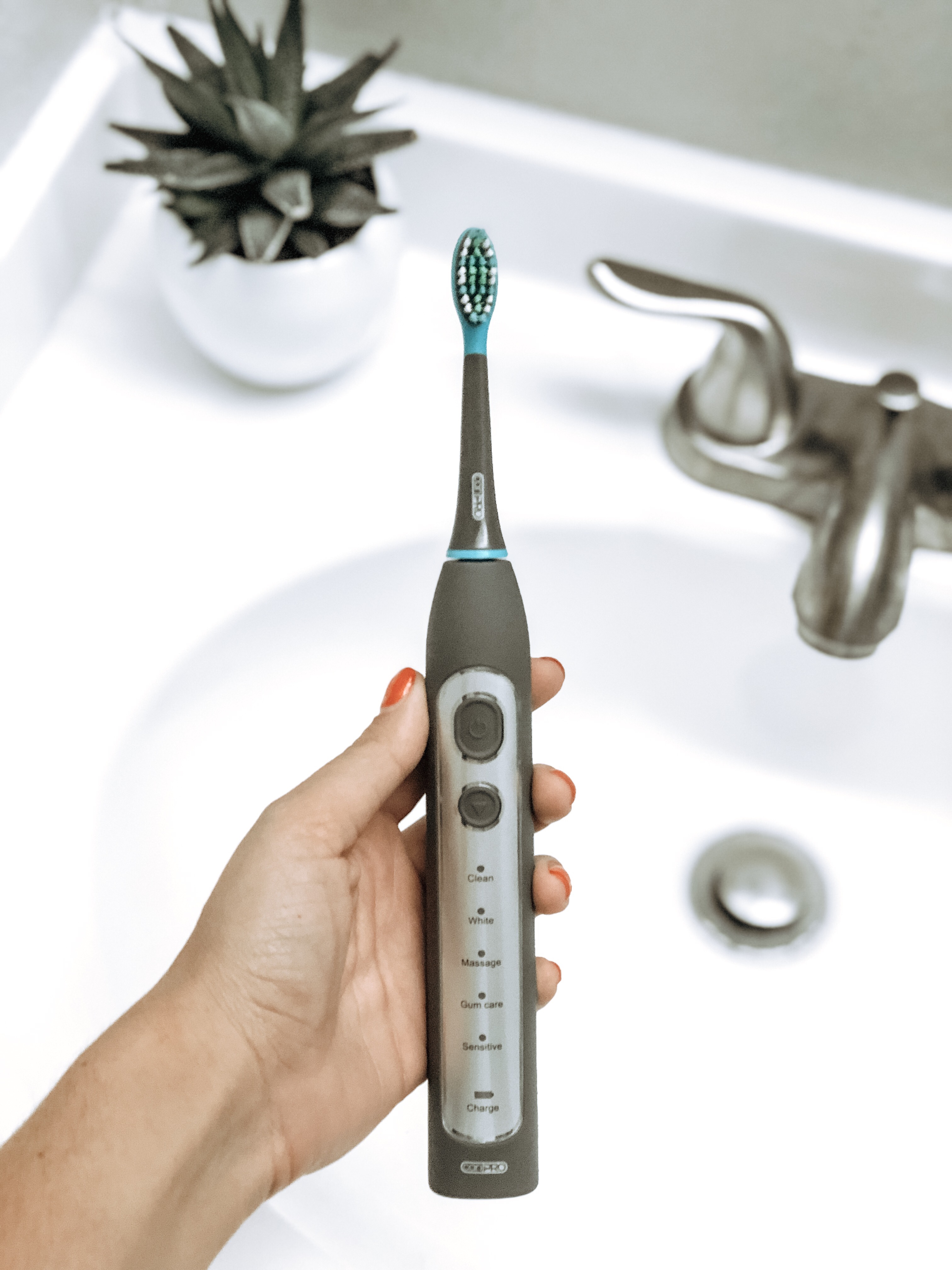 But the product I use every day is Smile Brilliant’s CariPro Electric Tooth brush. I even got my fiancé and one of our roommates to start using one too. I just love how it has multiple settings, like SENSITIVE, for my always sensitive teeth. My review of the best tooth brush here.