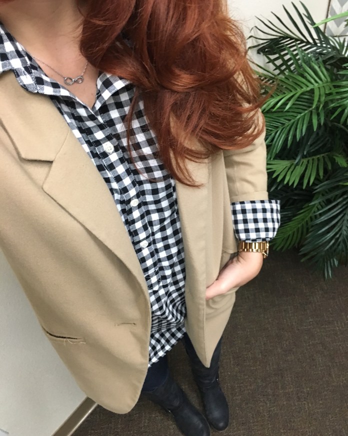 I think I need to limit myself because the blazer and the pants are definitely statement pieces. I have gotten a ton of compliments on both, and both are super comfy because they are over-sized. I prefer the looser blazers that do not have shoulder pads. Fitted blazers can be so restricting, and I have been loving pairing them over a casual outfit and adding heels like I did below. Jeans, a graphic tee, blazer, and booties or heels just looks so chic. Mixing style genres (is that the right term?) is so fun and kind of edgy. I also like that it is not my usual style. One of my co-workers told me she couldn’t figure out my style and I took it as such a compliment!