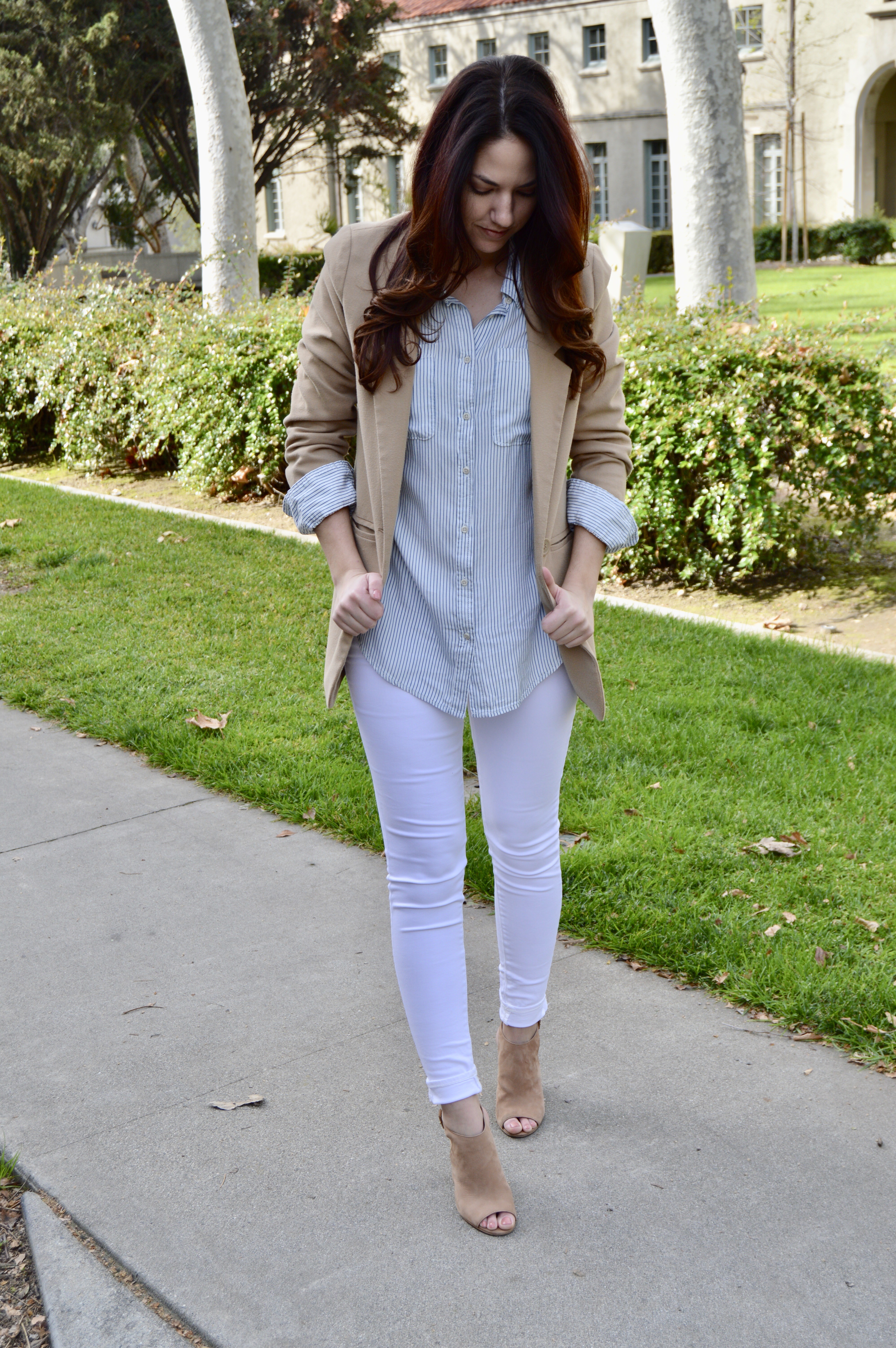 Blazer | Top (is 4 years old, any white graphic tee will work, I like this one here 🙂 | Jeans (similar) | Booties (similar)