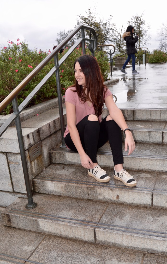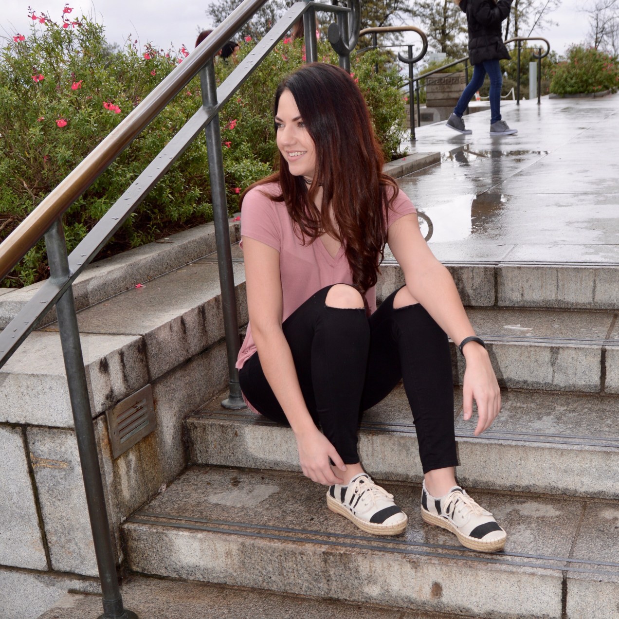 Now on to what is really important, my outfit for the pumpkin patch, DUH! I am just kidding, this outfit was nothing special but I do want to point out how amazing this v-neck is. I stalked and stalked this striped tee during the Nordstrom Anniversary sale until I found my size and I am so happy I prevailed in that mission. This has become my favorite casual top this season. It is super soft and light and goes with just about everything on the weekends. Whenever I do not know what to wear I just throw this on and either easy tuck it or tie a knot in the front or on the side and it is perfect. For the patch I paired it with my Adidas (also from the Nordstrom sale) and it was a comfy casual/athleisure outfit. I’m telling you, if you are looking for the perfect tee then check out this one, I will link below and it comes in 7 colors and is under $20!