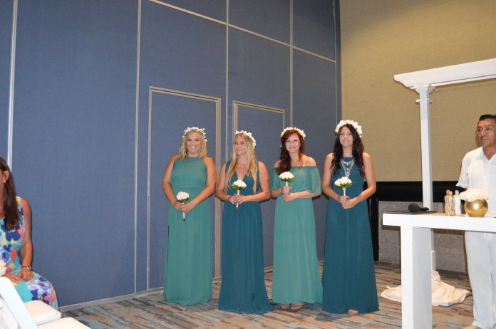 After waking up we realized it was storming outside, like BAD. When we got to my sister’s room you could tell she was a little nervous, after all the ceremony was supposed to be on the beach. Every time thunder would sound we made a joke and would do a drumroll so she couldn’t hear it. As we approached the final hour before the ceremony the wedding planner called to let her know they were going to have to move the ceremony and the cocktail hour inside. To be honest that really sucked. The whole idea of this destination wedding was to be able to have it on the beach. We stayed positive though and although the wedding couldn’t be where she planned, she still got to marry her husband and it was beautiful.