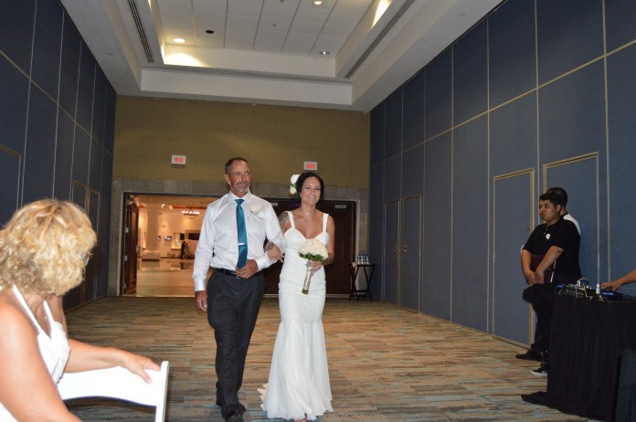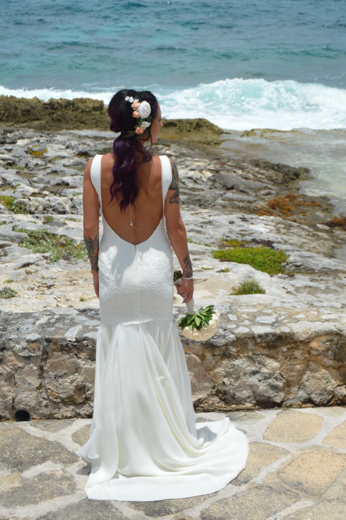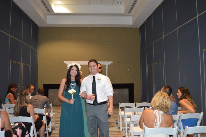 My sister and I had a plan to do hers and her husband’s first dance before dinner down by the beach, and we also had a surprise for my dad that they could do the father daughter dance. Even though it wasn’t a traditional wedding I wanted to make sure that she didn’t miss out on anything. We used a bluetooth speaker and just held it as they danced. We even made them do a bouquet and garter toss.