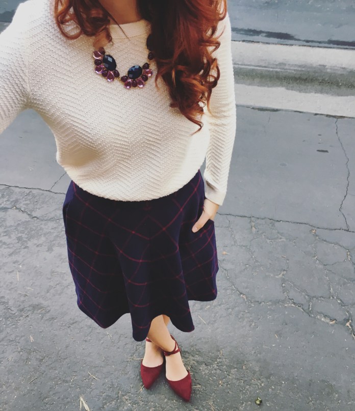 As for this polkadot top, I saw it on an Old Navy email and was in love! It is perfect for work wear and for a causal look. I found these black jeans at Old Navy too. I liked the high waist and the slightly faded black, but I was a little hesitant about the “straight leg” bottom. I wanted to wear this outfit with my booties but didn’t know if that would look funny. I decided to just go for it and I actually liked it. I think the released hem helped.
