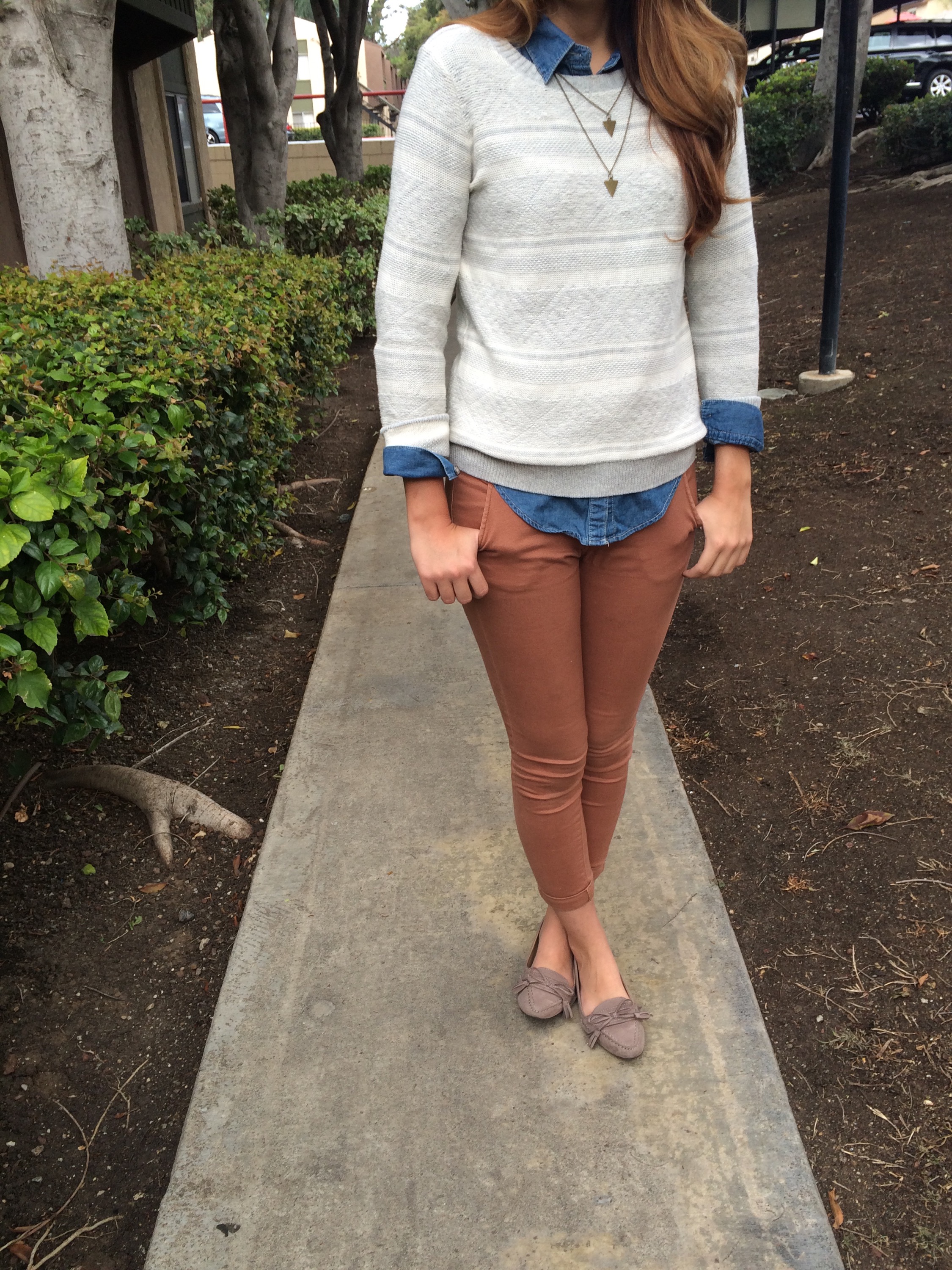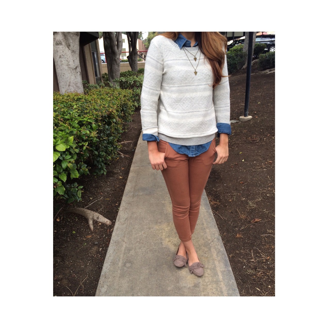 Another Pinterest inspired outfit! I know this is more of a fall outfit, I even pinned it in the fall, but it being cloudy and cool today I thought why not? It is cute and warm without having to wear a jacket. When I first bought these cropped pants I wore them once then almost regretted buying them. I thought with the color they are, an almost rusty-brown, it was going to be hard to wear them. So I didn’t wear them for a while, but then I started I get ideas, obviously from Pinterest, and now I wear them a lot! They are pretty practical for work because they are not jeans, but they are not slacks either, so you stay comfy while also feeling a little casual. Just another way to recycle your closet!