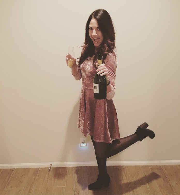 Happy New Year everyone! I hope you all had a fun and safe New Year’s Eve, I know I did! My boyfriend and I did a repeat from last year and went to Amanda’s, from Glitter It Gold, house. It was so fun again. We made dinner, well Amanda made dinner because she is an amazing cook and I helped by chopping up mushrooms, had champagne and cocktails all night, had her homemade dessert (ice cream and lemon-something-something bunt cake), played Card Against Humanity, then played corn hole in the living room until midnight. Their other friends came too, who I like to consider my friends as well now. They had to leave for another party but came back right after midnight. We all thought we would barely make it to midnight but we did! Once the other couple came back the three of us girls ended up staying up until 3:00AM! It was so nice and we didn’t have to worry about driving or rides or anything.