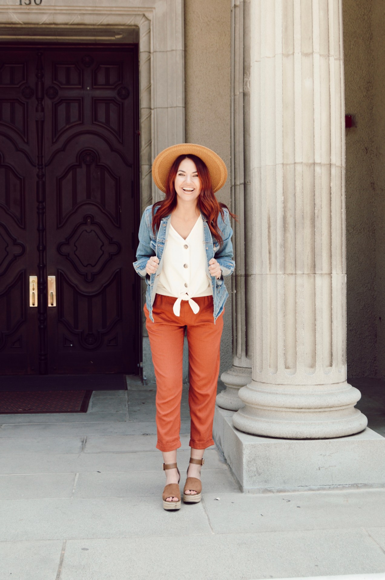 I love creating red, white, and blue outfits but with more vintage colors, like how these pants are not fully bright red, more of a tomato. Plus they will also be great for a hot summer night because they are thin.