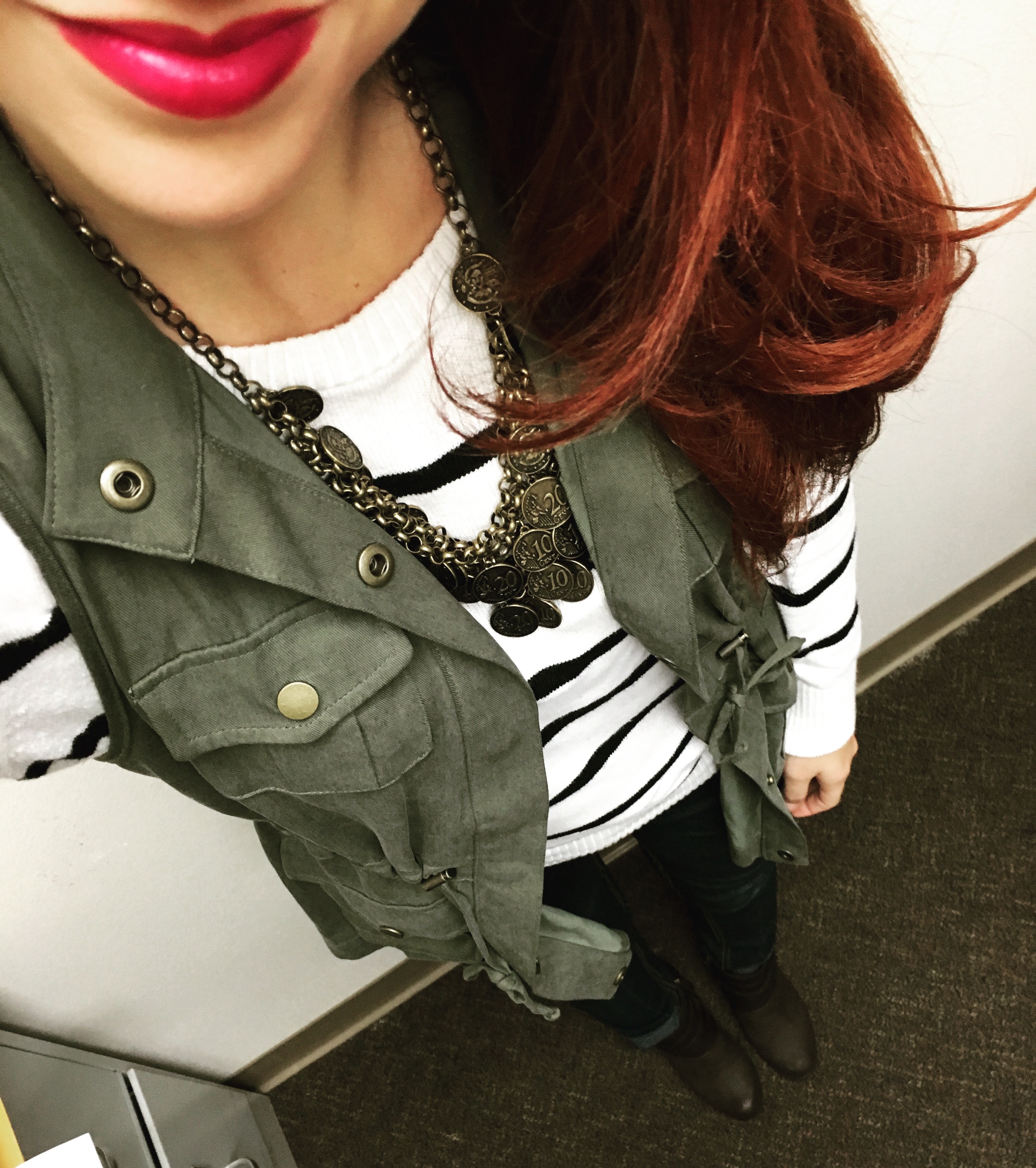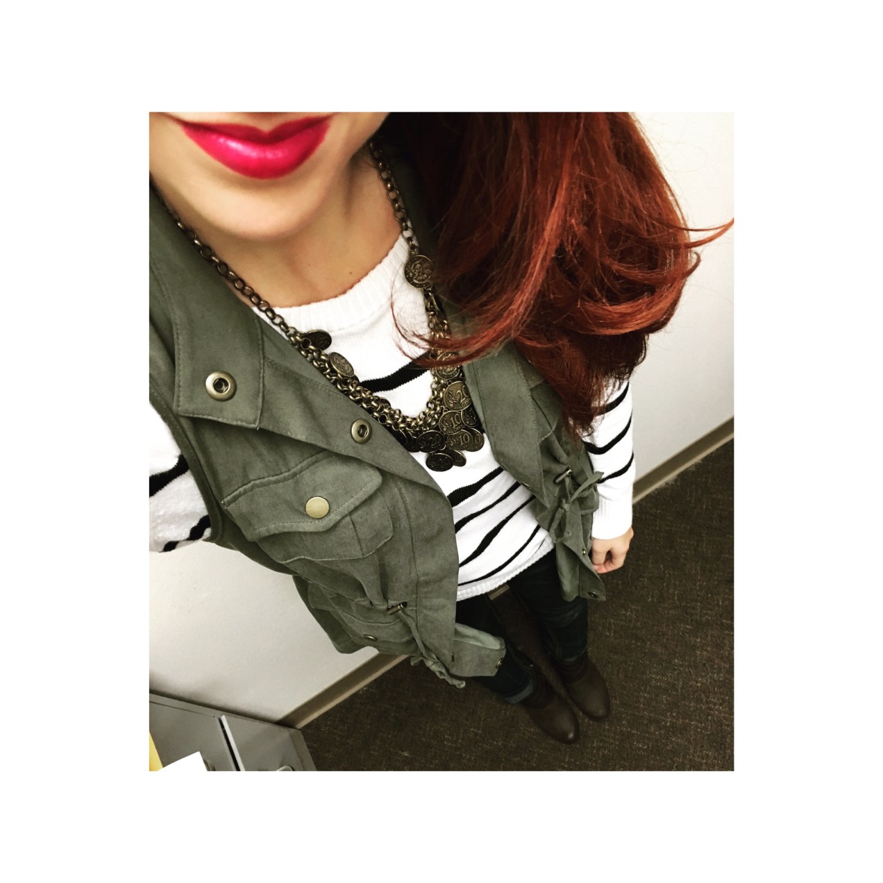 I was so surprised that I liked this look! I am not a turtleneck kind of girl but the black and white stripes pulled me in. The sleeves on this top go to your elbows and it is just so cute and classic! As for this olive sweater, I have been seeing so many bloggers with chenille cardigans and I finally know why. They are so soft!! I didn’t even want to take this one off. This look would go best with again dark blue jeans or black jeans and paired with black or brown booties. If you go with brown I would suggest a brown belt and tucking the top in (best choice for that would be high waist jeans). Linked here: Top | Cardigan